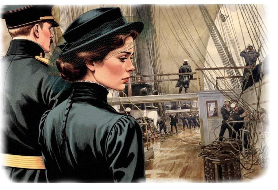 Знакомьтесь: Антонина Евгеньевна фон Шульц, невестка командира "Новика". Её супруг, Константин Шульц (в общении приставку "фон" предпочитал опускать) - был один из ближайших соратников Макарова, полярник, учёный великий знаток минно-трального и радиодела дела. Приглашён адмиралом в свой штаб, приехал с адмиралом из Петербург. Жена последовала за ним на Дальний Восток, оставив в доме своей матери двух дочерей-близняшек.