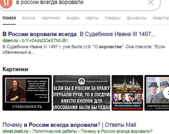 Рис. 1. Первые данные по запросу «В России всегда воровали». Яндекс, 2025 г.