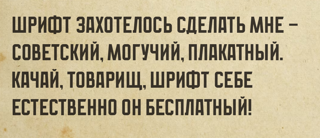 На пионерию же (или, точнее, на все "плакатно-советское") намекает и шрифт, который Наталья выбрала из предложенных мной вариантов. На самом деле это шрифт с "назначением": его создавали "прицельно" плакатным. Что отражено в том числе в сопровождающей его забавной рекламке: