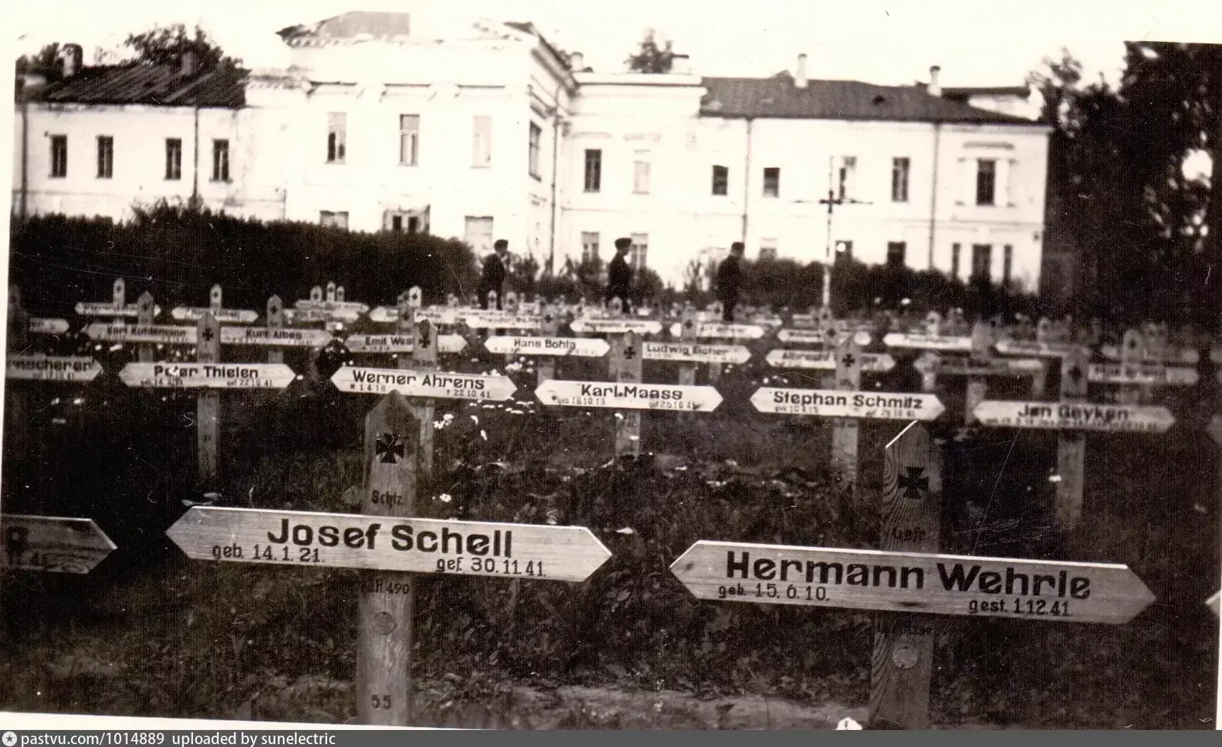 О изменении отношения к населению — в мае 42-го года жителей перестали вешать открыто и начали расстреливать, в основном в парке Сильвия возле стены. Там рядом как раз располагалось здание СД, так что вести пленных недалеко. Закапывали там же, в накопанных ещё до начала боёв нашими щелях. Поиском останков и перезахоронением никто особо с тех пор не занимался — недавно был кратковременный всплеск, когда подняли некоторое количество останков, и на этом всё.