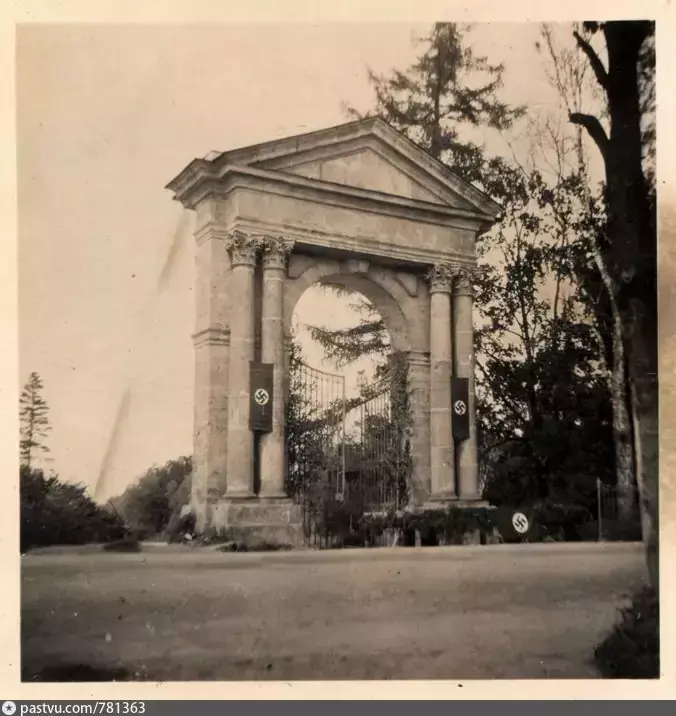 Но металлические створки немцев не пережили (опять же, с воротами могу путаться, какие где, может это Смоленские — но примерно должно быть понятно, как всё раньше выглядело).