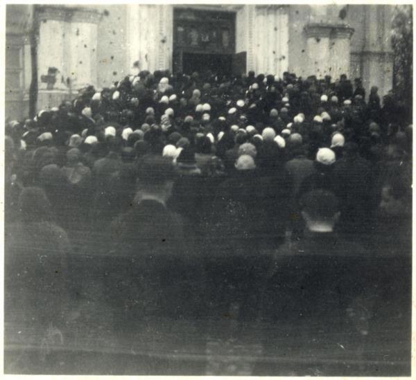А вот празднование Пасхи. Немцы открыли собор, закрытый коммунистами в 30-х годах (на фото всё та же «бабушка» — Леля Алексеева):