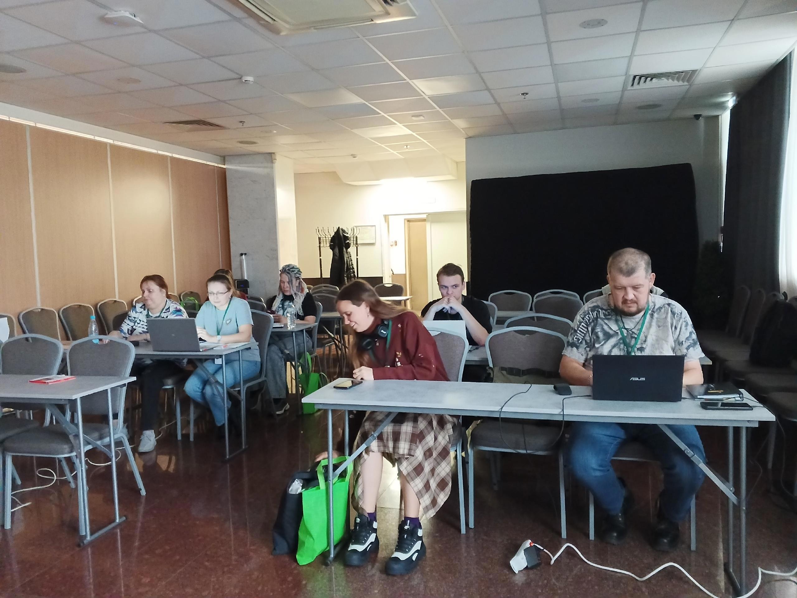 После прогулки мы успели заскочить в номер организаторов, получить оргпакет, расписание работы групп и отправились на первое занятие. Группа из десяти, пардон, одиннадцати человек (нас с Сергеем двое), собиралась неторопливо.