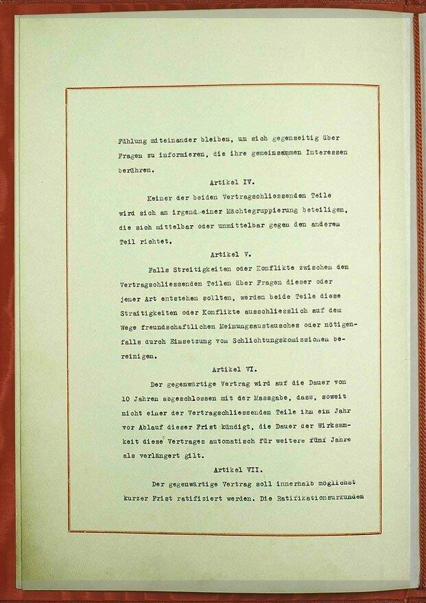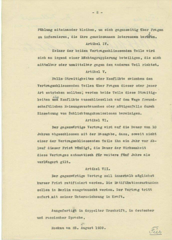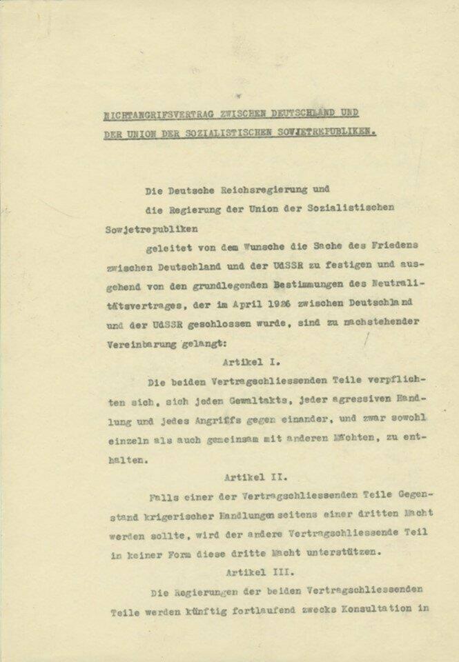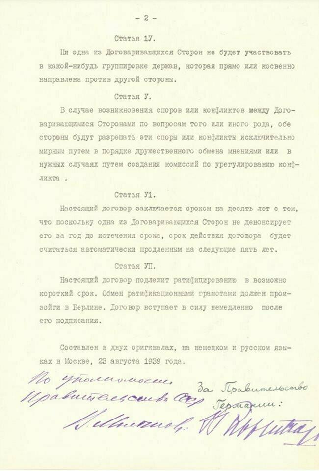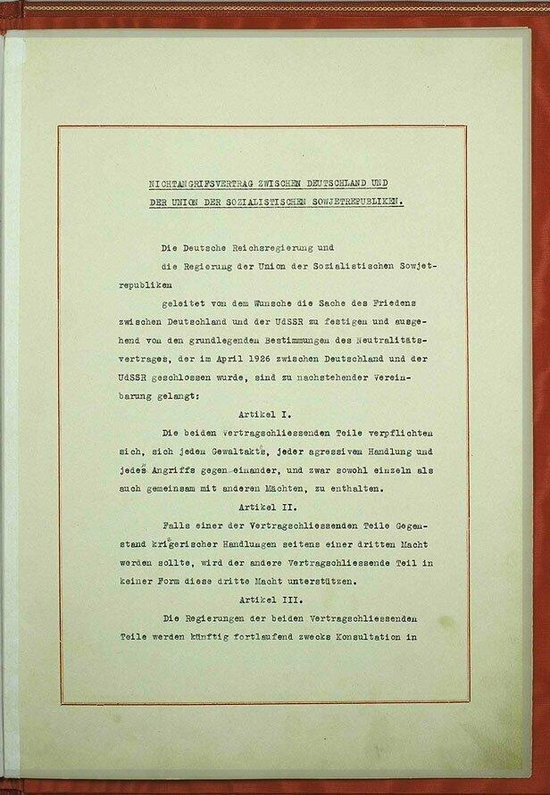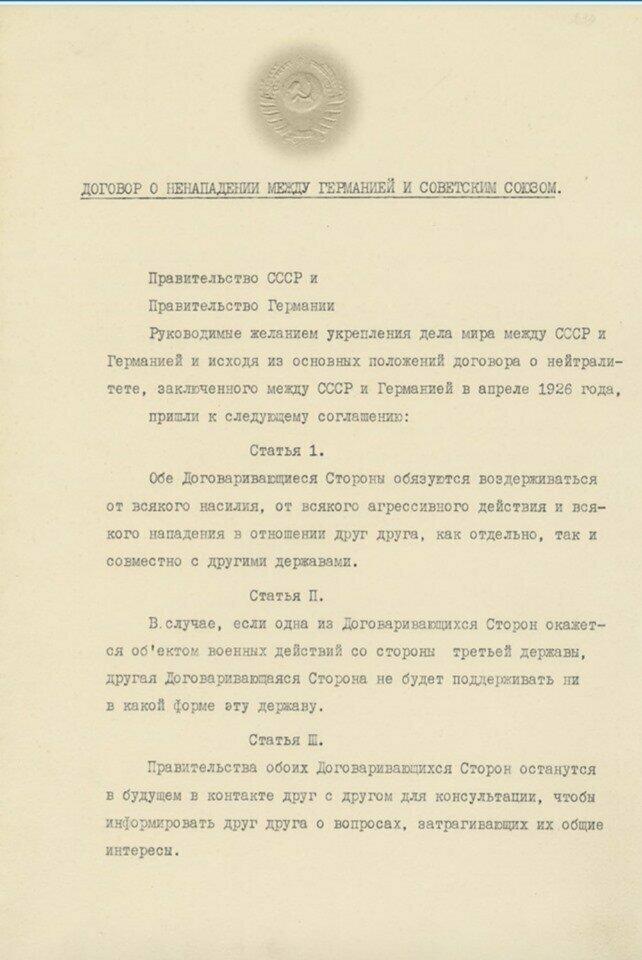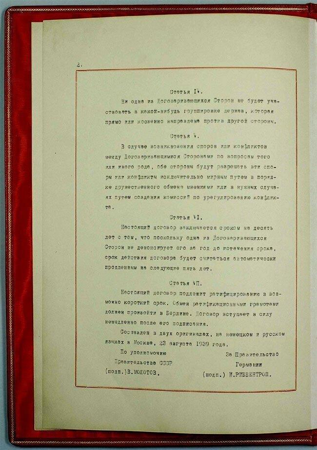 Автор: Игорь ХарламовИсторико-документальный департамент российского внешнеполитического ведомства опубликовал оригинальные документы Договора о ненападении между СССР и Германией на русском языке.