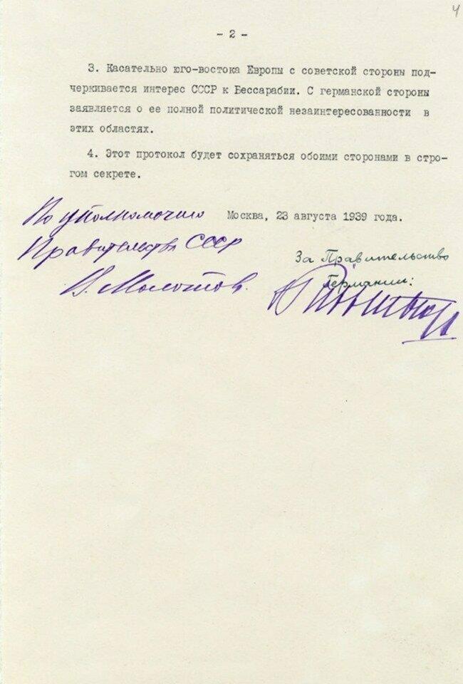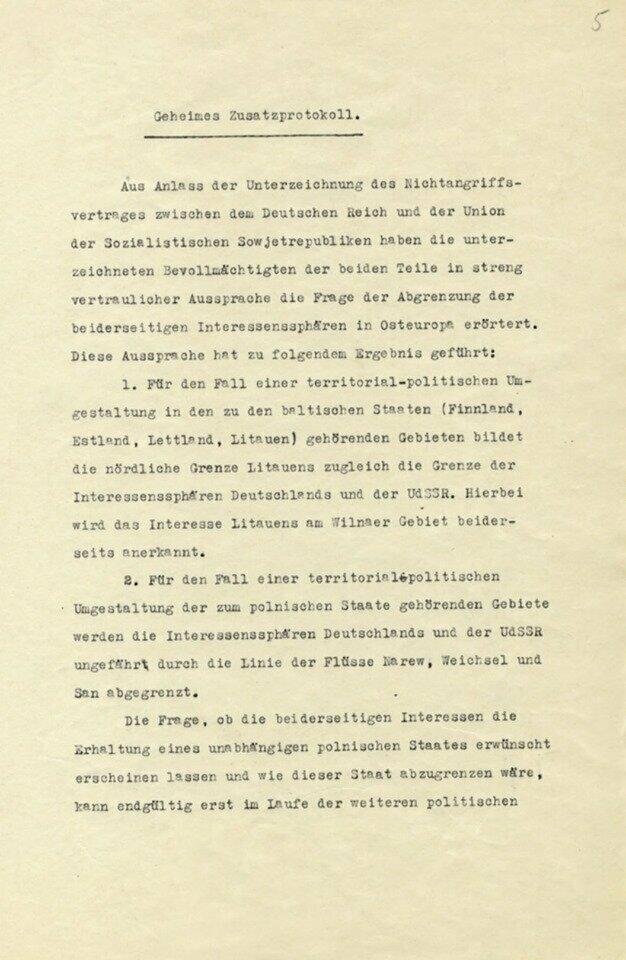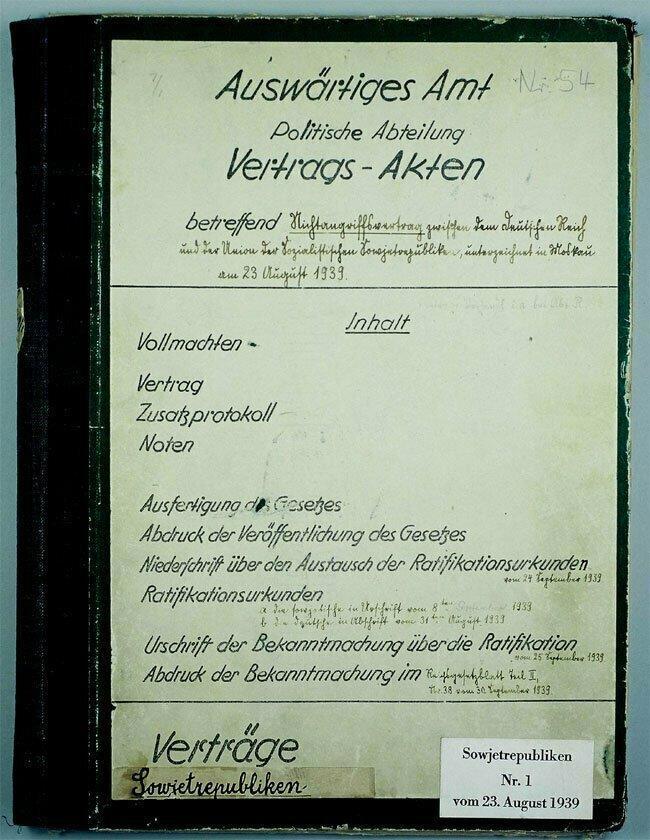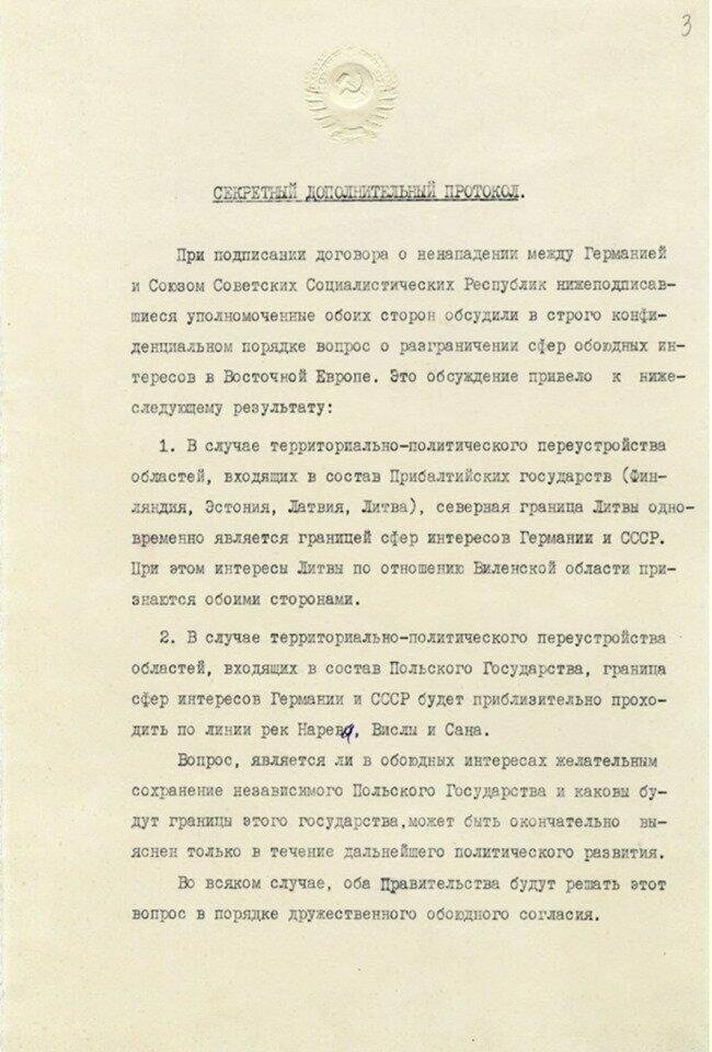Сканы пакта Молотова — Риббентропа на русском языке впервые, официально выложены в открытый доступ. Также был опубликован якобы скан секретного дополнительного протокола к Договору о ненападении 1939 года, который разграничивал сферы интересов СССР и Германии от Балтики до Черного моря.