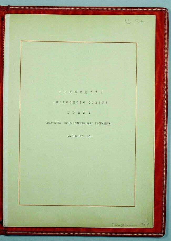 Объявление Президиума Верховного Совета Союза Советских Социалистических Республик;