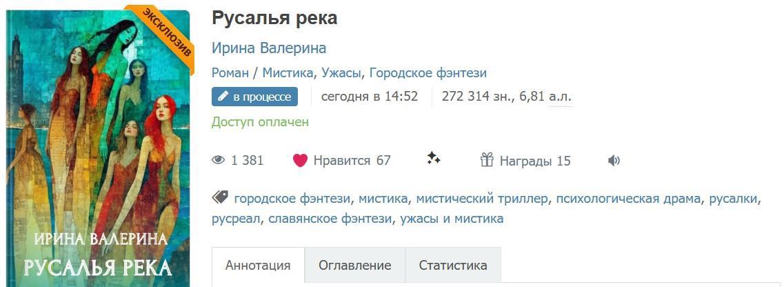 Автор: Юлия ЗубареваМне посчастливилось познакомиться с отрывком из «Русальей реки» Ирины Валерьиной ещё до публикации — и вдвойне повезло получить возможность лично обсудить с автором наиболее пронзительные, «триггерные» темы произведения.