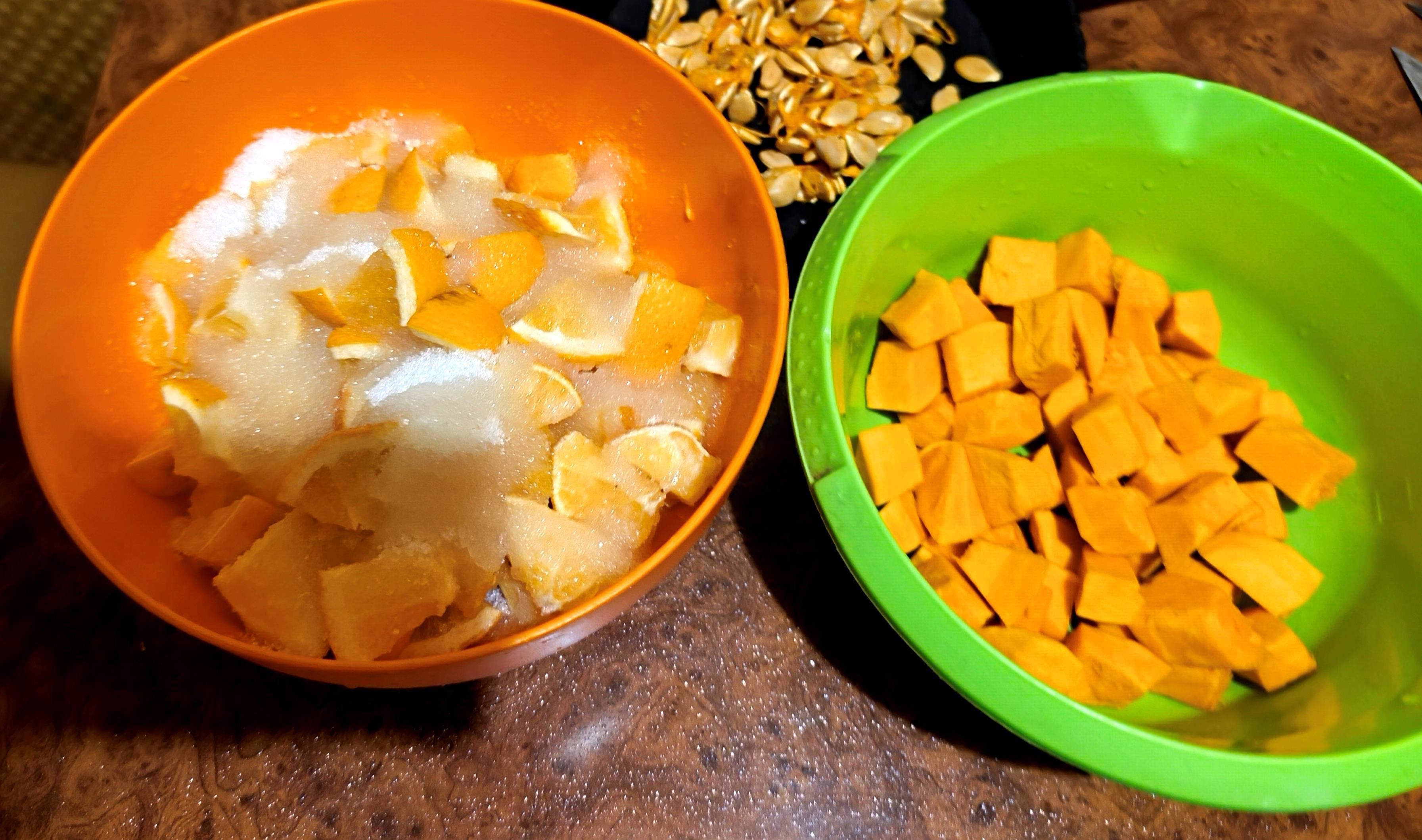 Забой Хеллоуинской тусовки я решила начать с производства маринованной гарбузки, сладкой и солёной, к винишку и водочке.