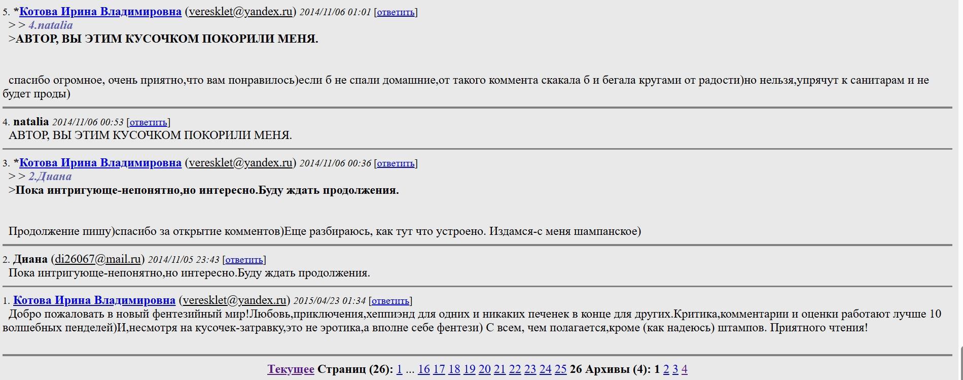 Если кто хочет погрузиться в самое начало КК, то вот ссылка на архив комментариев) https://samlib.ru/comment/k/kotowa_i_w/01king.1?PAGE=26
