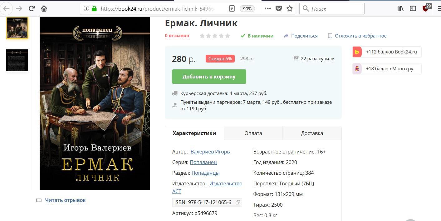 Автор: Валериев ИгорьКнигу "Ермак. Личник" с сегодняшнего дня можно приобрести в бумаге.