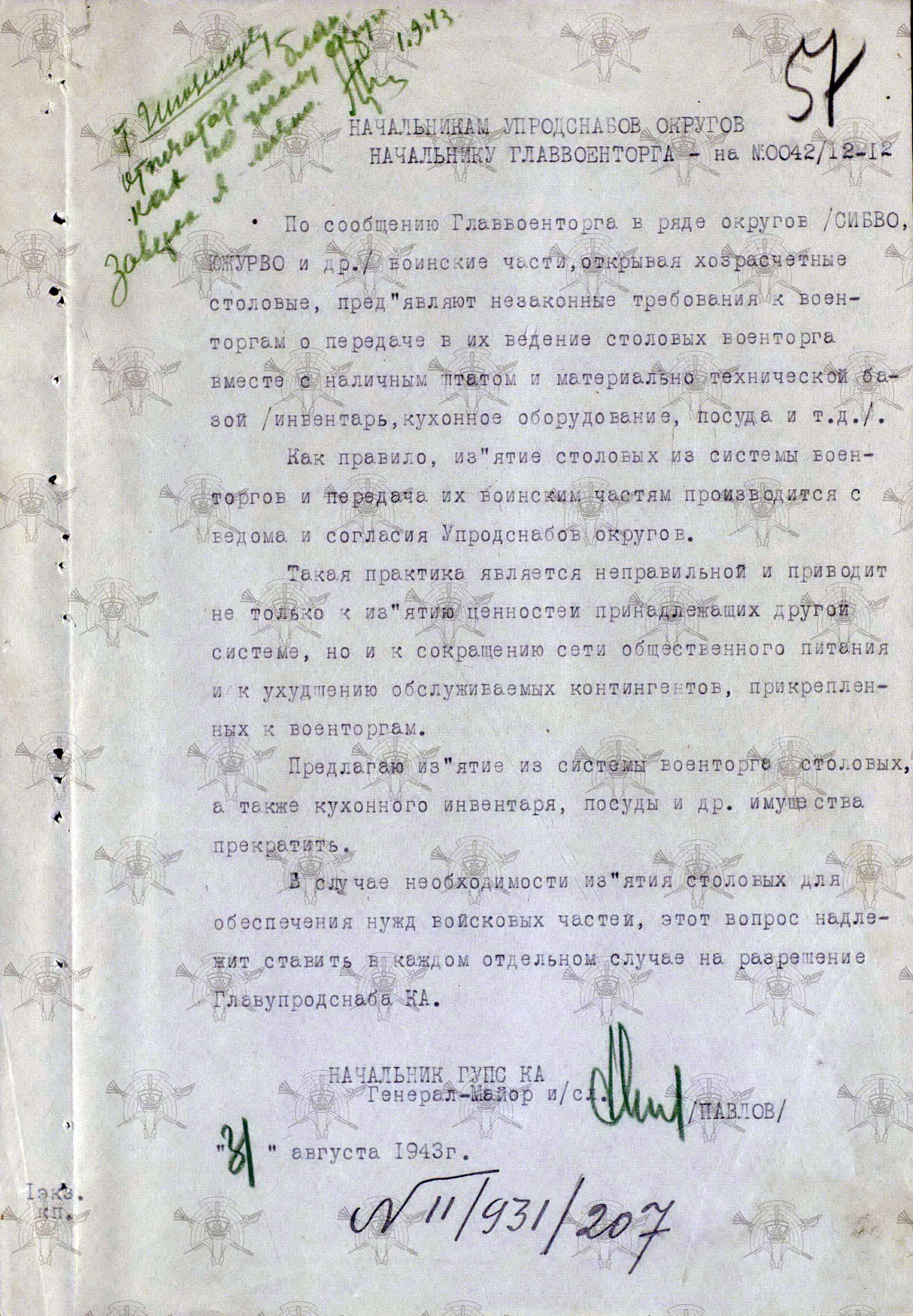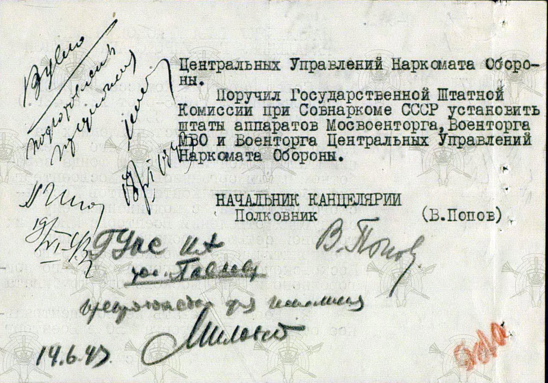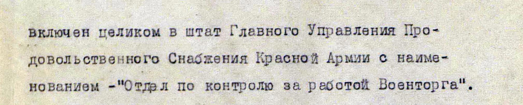 Этот порядок продержался полтора года, и в ноябре 1943 года функции по контролю за работой Военторга перешли в ведение Начальника Тыла Красной Армии: