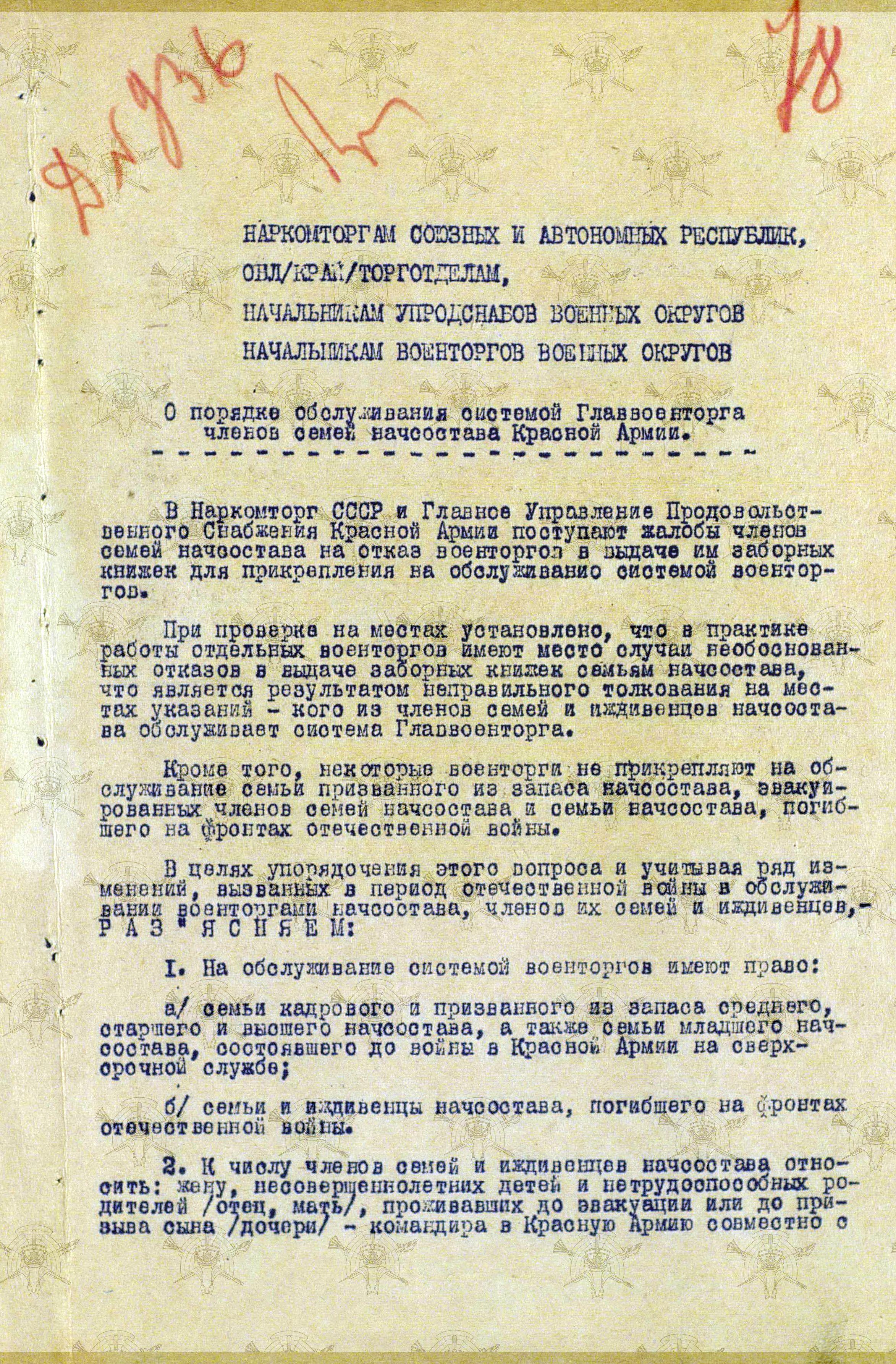 Военторги в 1943 г.: карточная система, нормированное снабжение, категории получателей, переписка