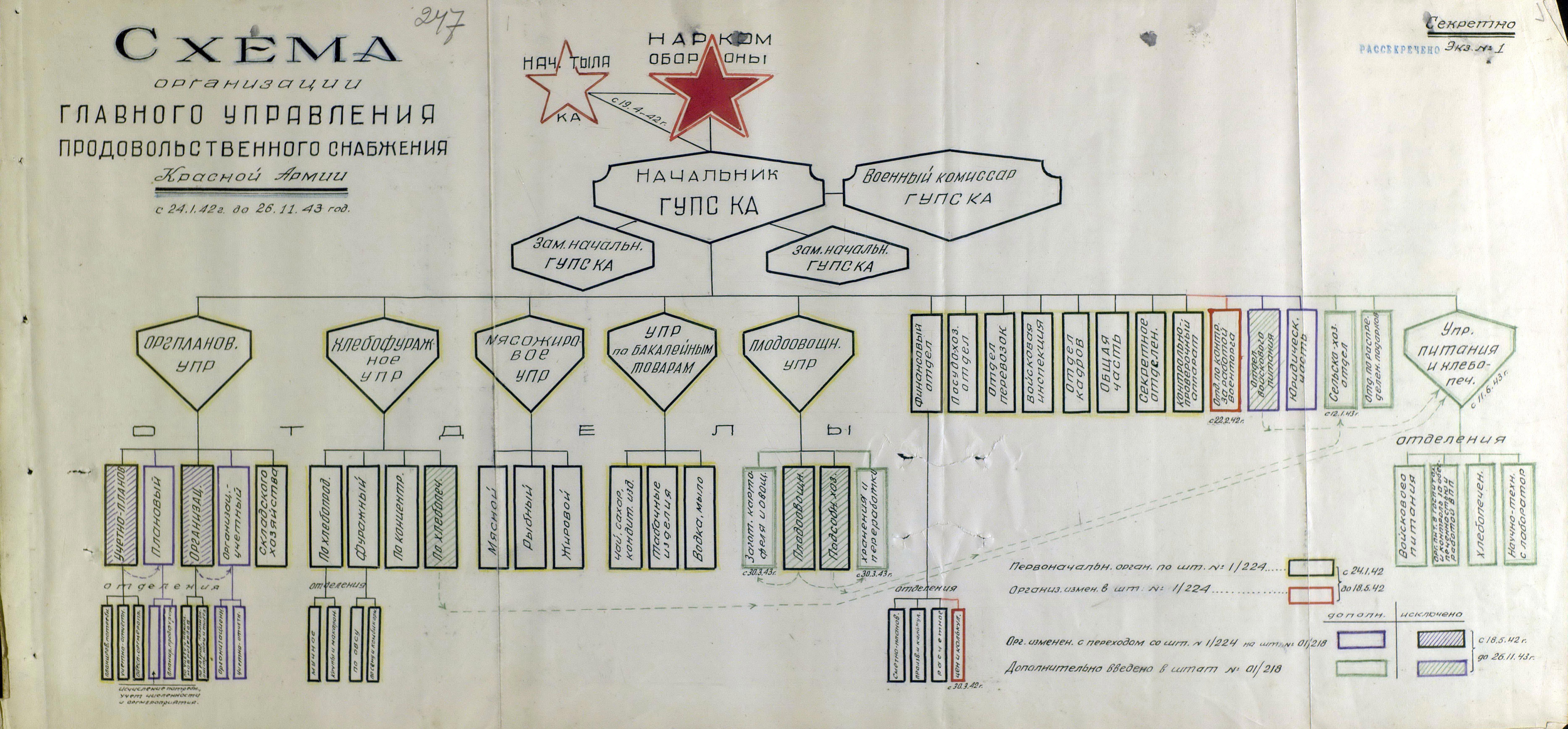 Немного о системе контроля и и руководства над системой Главвоенторга в годы Великой Отечественной войны. Если на первоначальном этапе эти функции были сосредоточены в Наркомате торговли СССР, то февраля 1942 г., контроль за торговлей и питанием начсостава Красной Армии переходит к Главному Управлению Продовольственного Снабжения Красной Армии. Вот так об этом говорится в отчетных материалах Упрпродснаба КА: