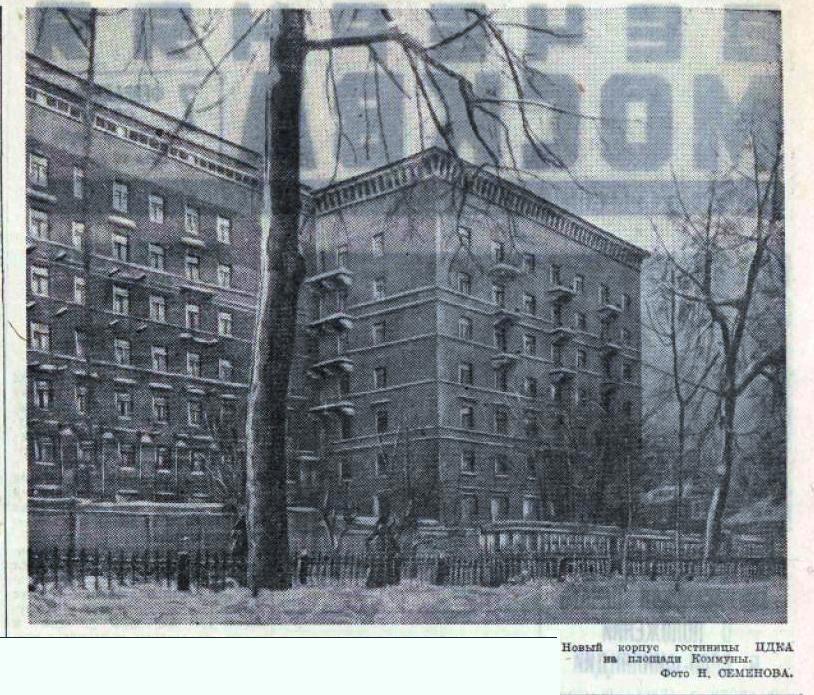 Гостиница ЦДКА. Источник:«Вечерняя Москва» от 7 февраля 1940 год