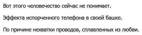 Эффекта испорченного телефона в своей башке.