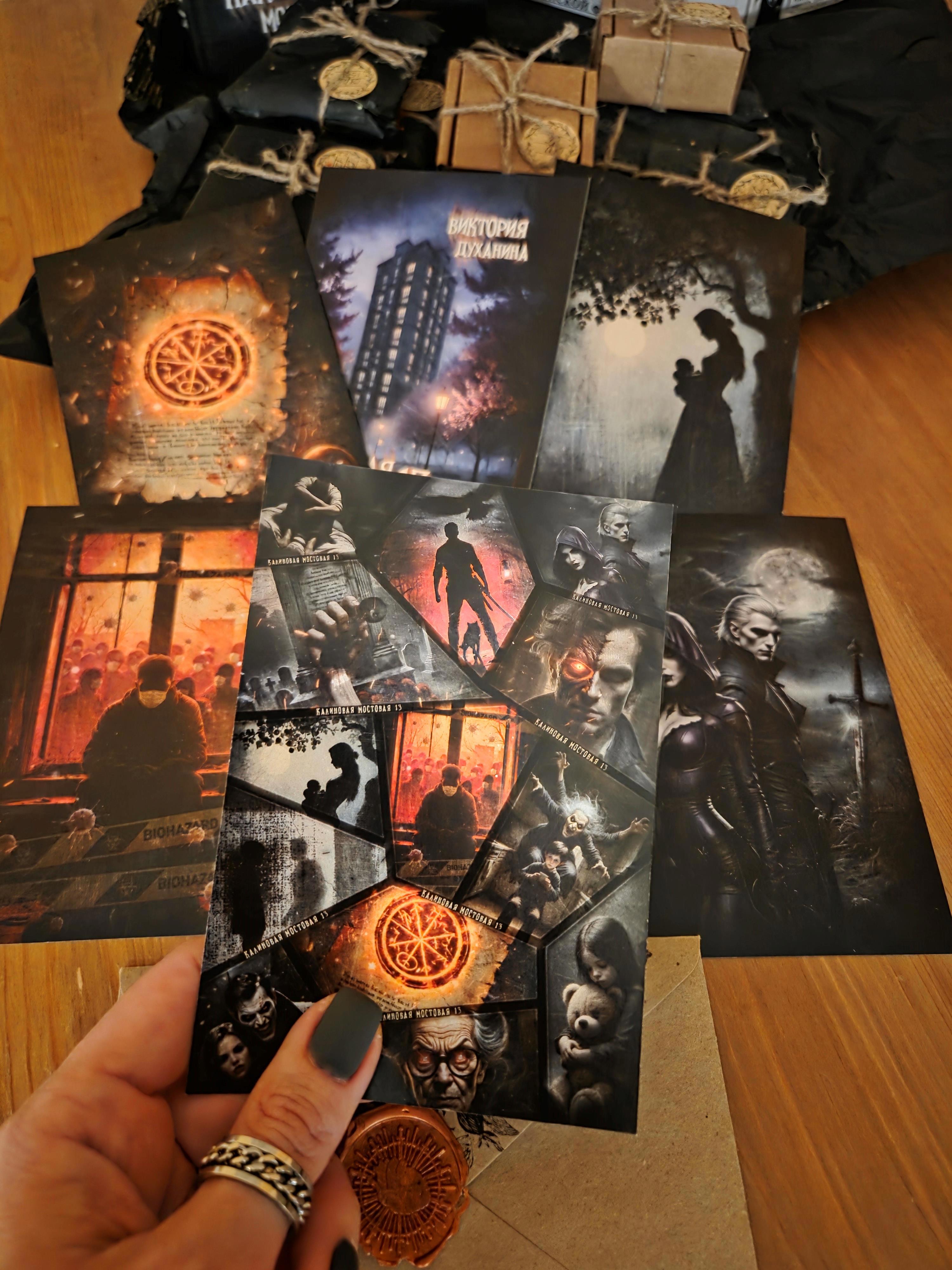 И так, что же есть еще. Конверт с открытками с обложками рассказов. Да, отдельно картинки из некоторых рассказов, которые можно рассмотреть, поставить на полку, использовать как закладку, да просто кого-то порадовать этой красотой.