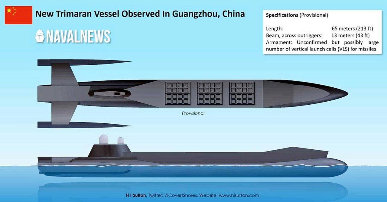 Очередная новость пришла из Китая. Хотя, как сказать, из Китая… сами китайцы особо про это не распространяются пока – не их привычки. Шум подняли, как всегда, сэшэашники. Именно они сообщили в достаточно паническом тоне, что китайцы строят «…на верфи Хуанпу в Гуанчжоу…» нечто не совсем обычное. И даже картинку показали. Правда, это не фотография, а всего лишь «компьютерная графика», но надеюсь, что они не из пальца её высосали, а у них были на это какие-то основания. Короче новый боевой (опытный?) корабль китайского флота будет выглядеть вот так:
