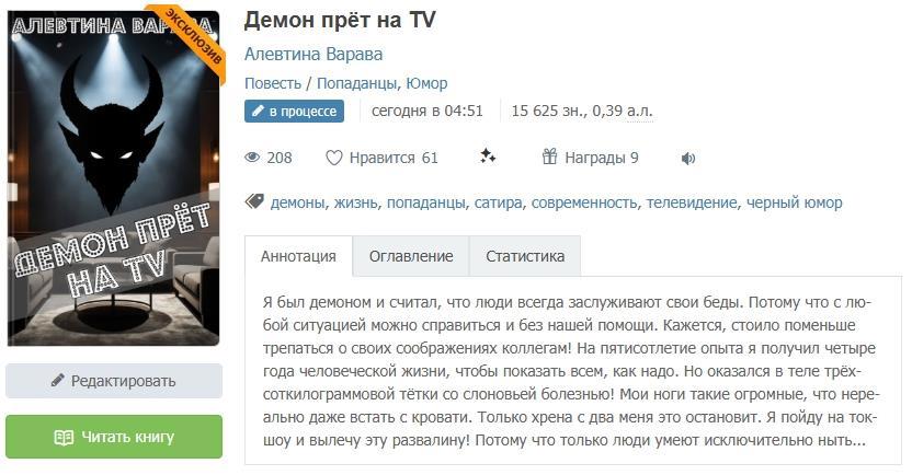 Читать дальше чёрный юмор о мытарствах одного демона на ток-шоу тут (сслылка)