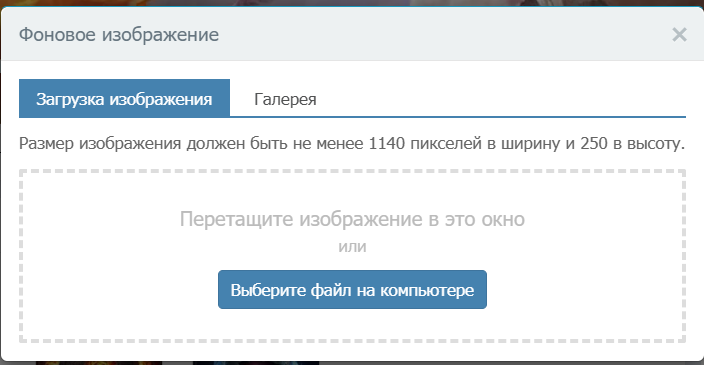 После чего следует выбрать нужное изображение.Следует заранее привести изображение к нужному соотношению сторон, а именно 1140 пикселей в ширину и 250 в высоту.