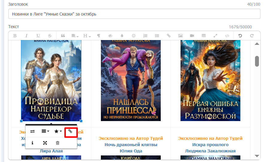 После чего арт вставляется при помощи нужного значка в посте/сообщение/книге и ввода ссылки
