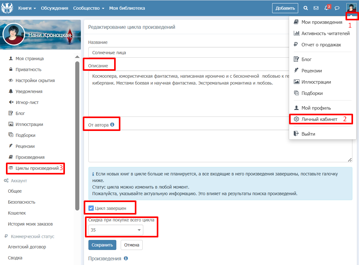 Авторы могут собирать свои книги в циклы по своему усмотрению.