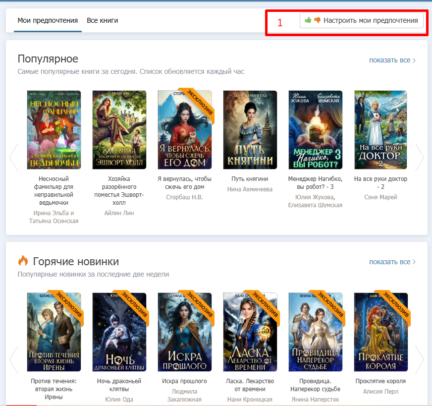 Также у всех пользователей имеется возможность убрать книги конкретного автора или цикл из главной страницы или других виджетов.