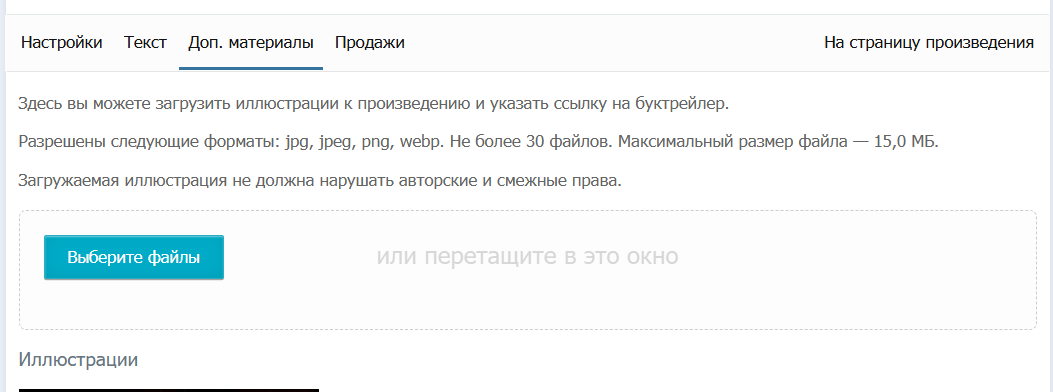 У авторов имеется возможность вставки дополнительных материалов к произведению