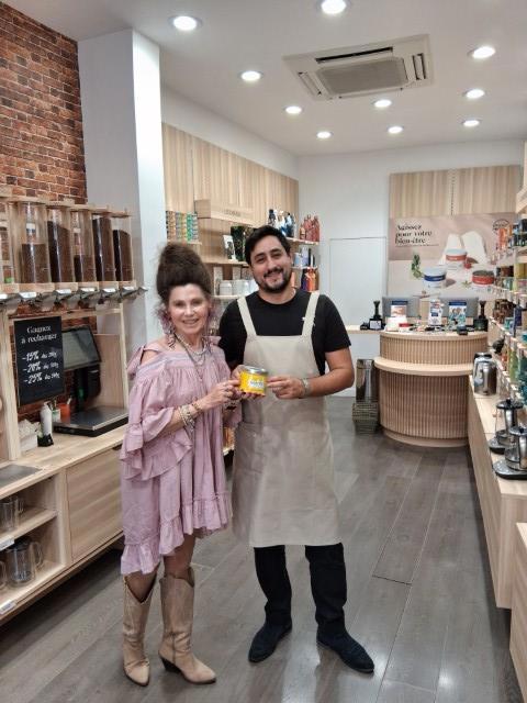 Купили и какой-то замечательный крупнолистовой чай. Его мы попробовали в гостиничном номере, нам он понравился, но там был пакетик, а мы искали листовой.. Это - грейпфрутовая смесь зелёного чая, мате и трав. Благодаря глобализации, вернувшись домой, мы обнаружили этот чай на Амазоне, но, во-первых, мы бы о нём ничего не знали, а во-вторых, это два разных удовольствия - покупать в оригинальном магазине во Франции, где его и производят, или купить online.