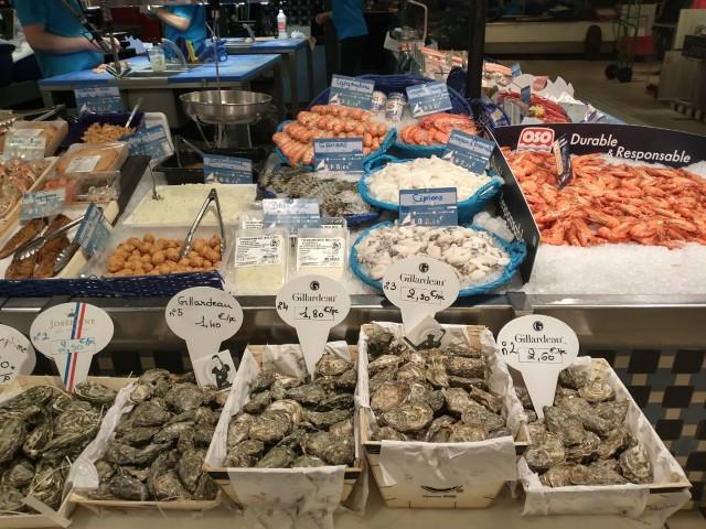 Как уже упоминали, в каждом городе мы заезжаем на рынок, во-первых, порадовать себя чем-то экзотическим, во-вторых, посмотреть, что покупают местные жители и пообщаться с ними. Рынки во Франции отличные, но народу на рынках мало - пришёл, купил, ушёл, не то, что, например, в Барселоне.