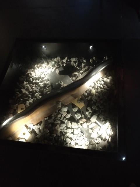 Рельс согнул не я, честно, это после землетрясения. Под ногами, под стеклом лежит согнутый штопором во время землетрясения рельс.