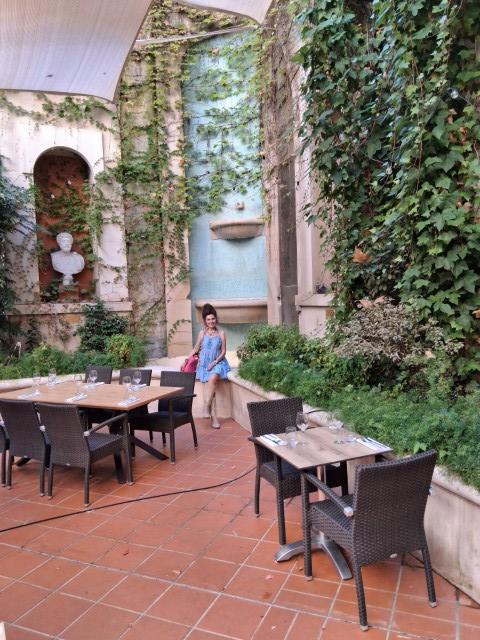 Во внутреннем дворике гостиницы ресторан под открытым небом; интересно, что они делают в дождь?