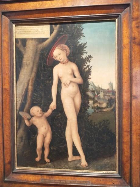 И вот ещё Лукас Кронах - Венера, богиня любви, со своим сыном Купидоном, который жалуется ей на то, что его ужалили пчелы после кражи сот с медом.