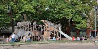 Посмотрите, как выглядит детская площадка - по-моему, в отличие от привычных, она готовит детей к Апокалипсису. Это делается специально, чтобы дети под надзором родителей обучались безопасному поведению.