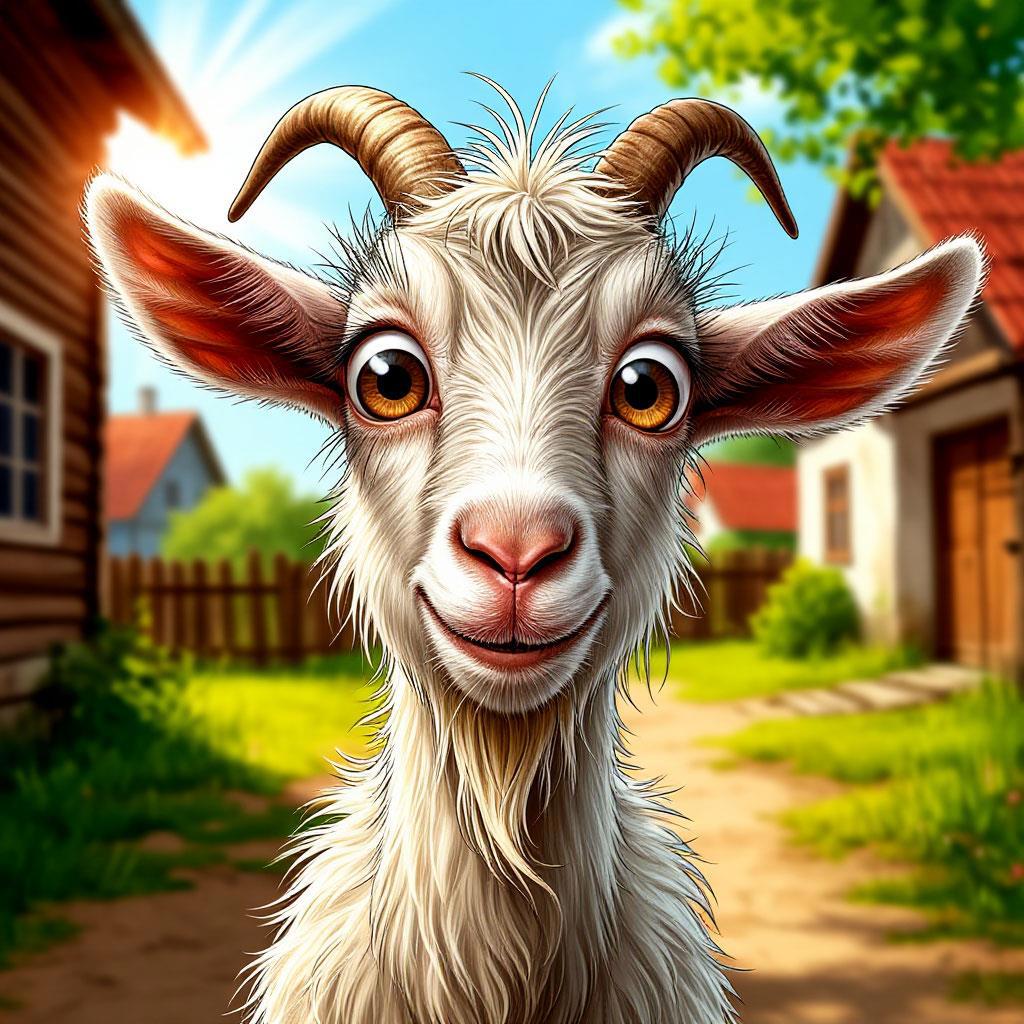 У соседки свекрови по даче есть парочка коз (штук так 7) - те еще газонокосилки с дьявольским взглядом. Но Шедеврум не знает, оказывается, что у них прямоугольные зрачки :(
