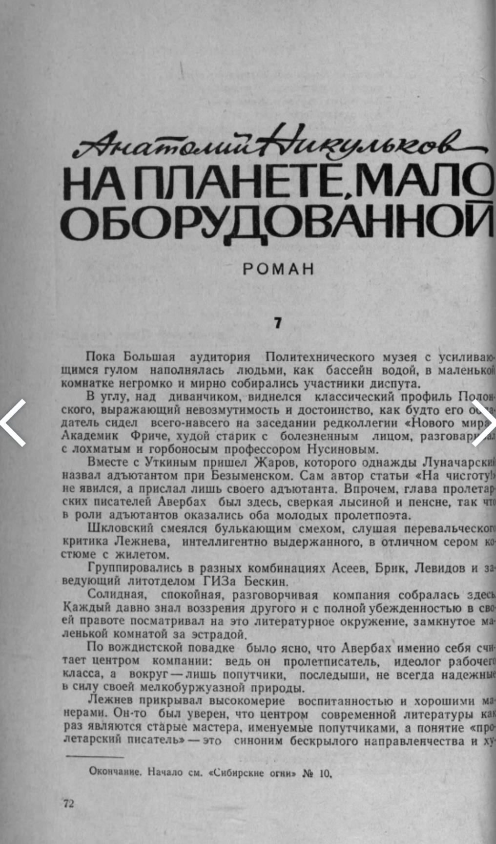 «На планете малооборудованной» (1967) – первый роман о поэте Владимире Маяковском, написанный новосибирским писателем, драматургом, публицистом, критиком, главным редактором «Сибирских огней» (1975-1987) Анатолием Никульковым.
