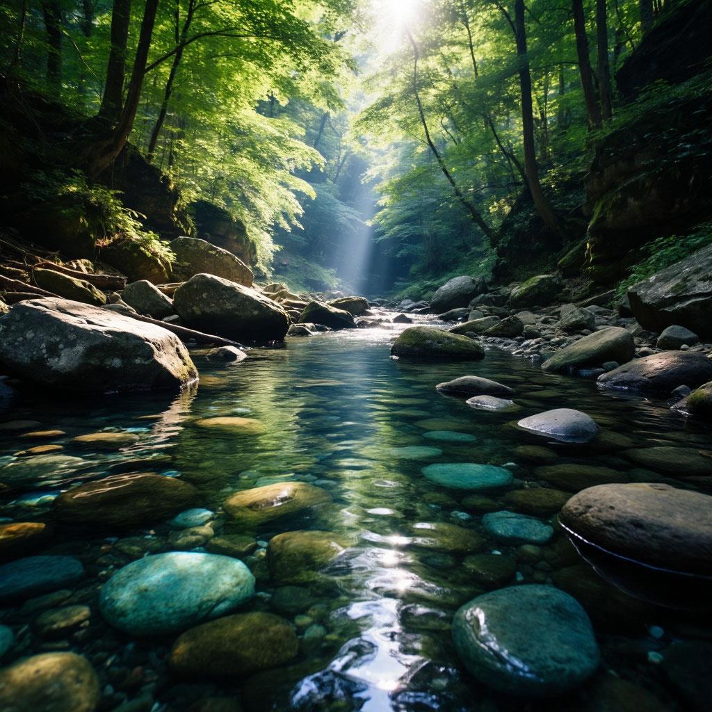 Автор: Ас - Номак & NeokorВ далёком ущелье, где солнечные лучи едва пробивались сквозь густую листву, протекал тихий ручей. Его воды были чисты и прозрачны, и на его дне лежали драгоценные камни; яркие, сверкающие, но скрытые от посторонних глаз глубиной и спокойствием воды.
