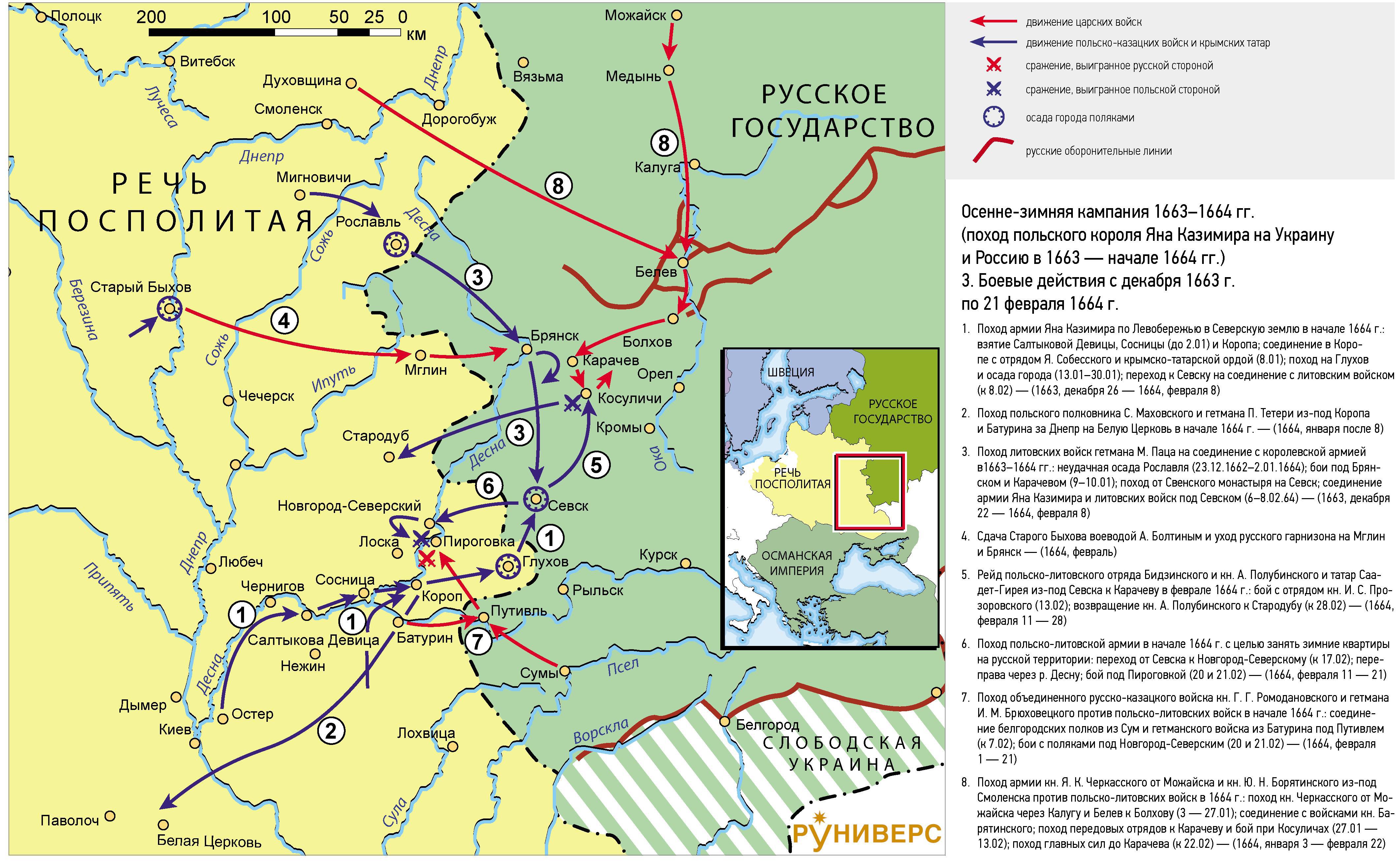 Вот вам простой пример: в 1663-м году польский король Ян Казимир задумал зимний поход на Москву. Большинство обывателей о нем знают крайне мало - а почему? А потому, что со стороны кажется, что поход этот обернулся пшиком и был отбит сравнительно легко.