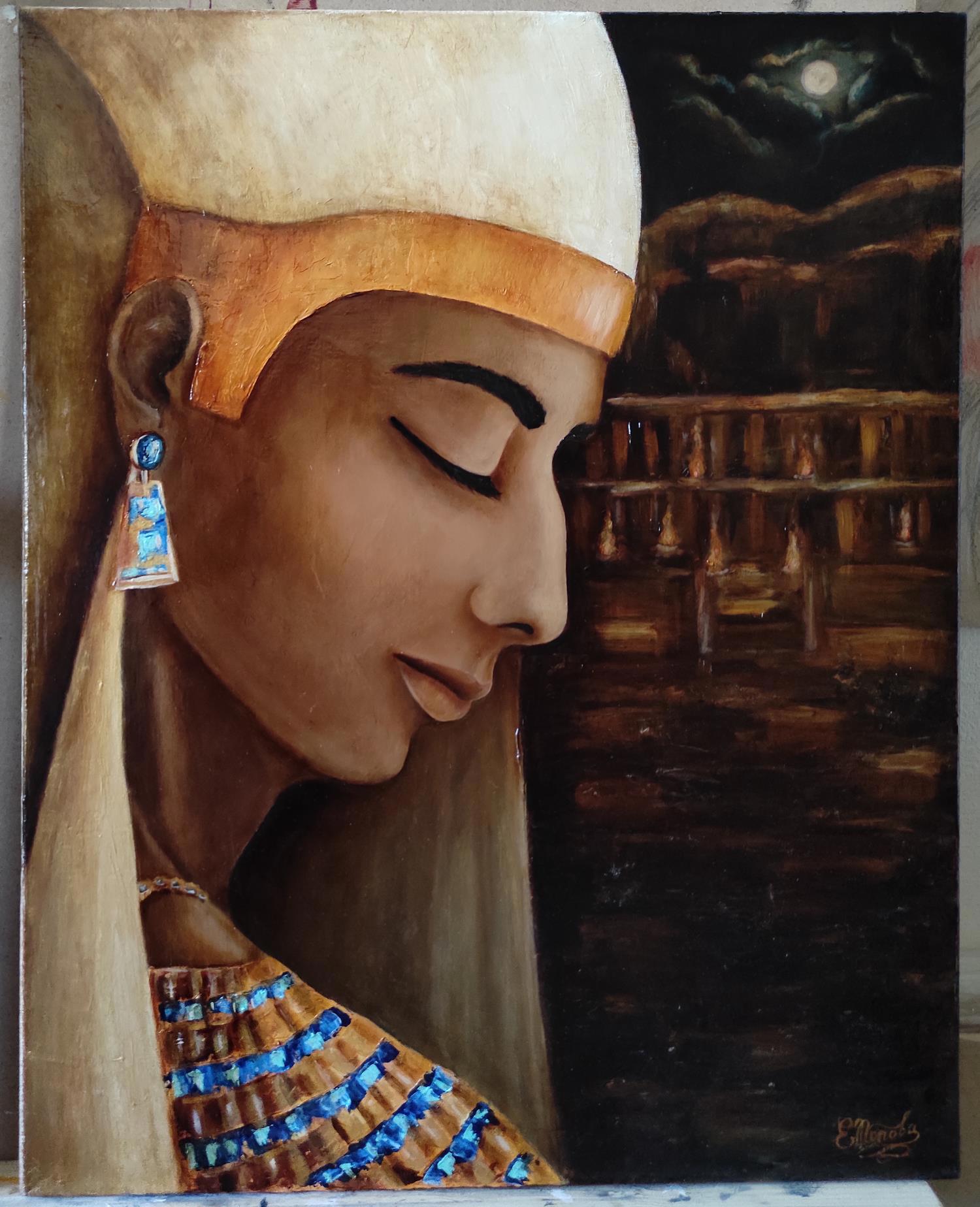 И портрет Хатшепсут в молодости на фоне строящегося заупокойного храма в Дейр-эль-Бахри.