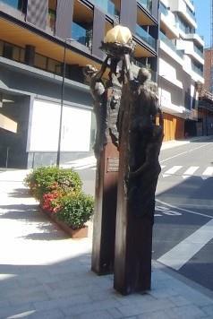 Лучше сфотографировать не удаётся, так как скульптура находится на островке кругового движения, а мы идём по тротуару вдалеке.
