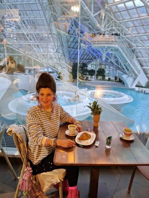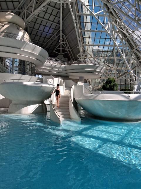 После купания можно зайти в кафе или ресторан. Оттуда стёкла в центральный бассейн прозрачные, а из бассейна сюда - зеркальные.