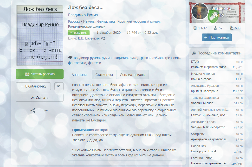 Попытка рецензии на рассказ Владимира Руммо "Лож без беса"