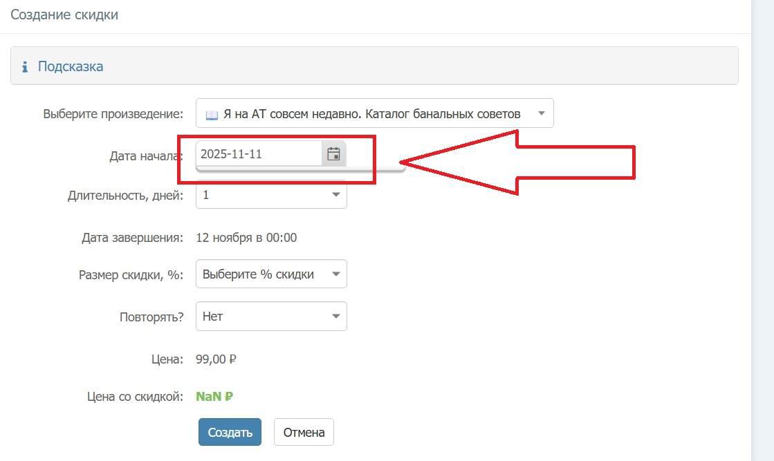 Чтобы сайт не противился, нужно выбрать старт именно в дату, на которую администрация делает "поблажку", например, на 11.11.25 (какой-то там всеобщий день скидок):