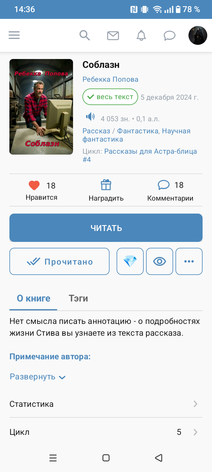 Продолжаем отличный флэшмоб. Прочитал один интересный рассказ, решил поделится с Вами: https://author.today/work/400274