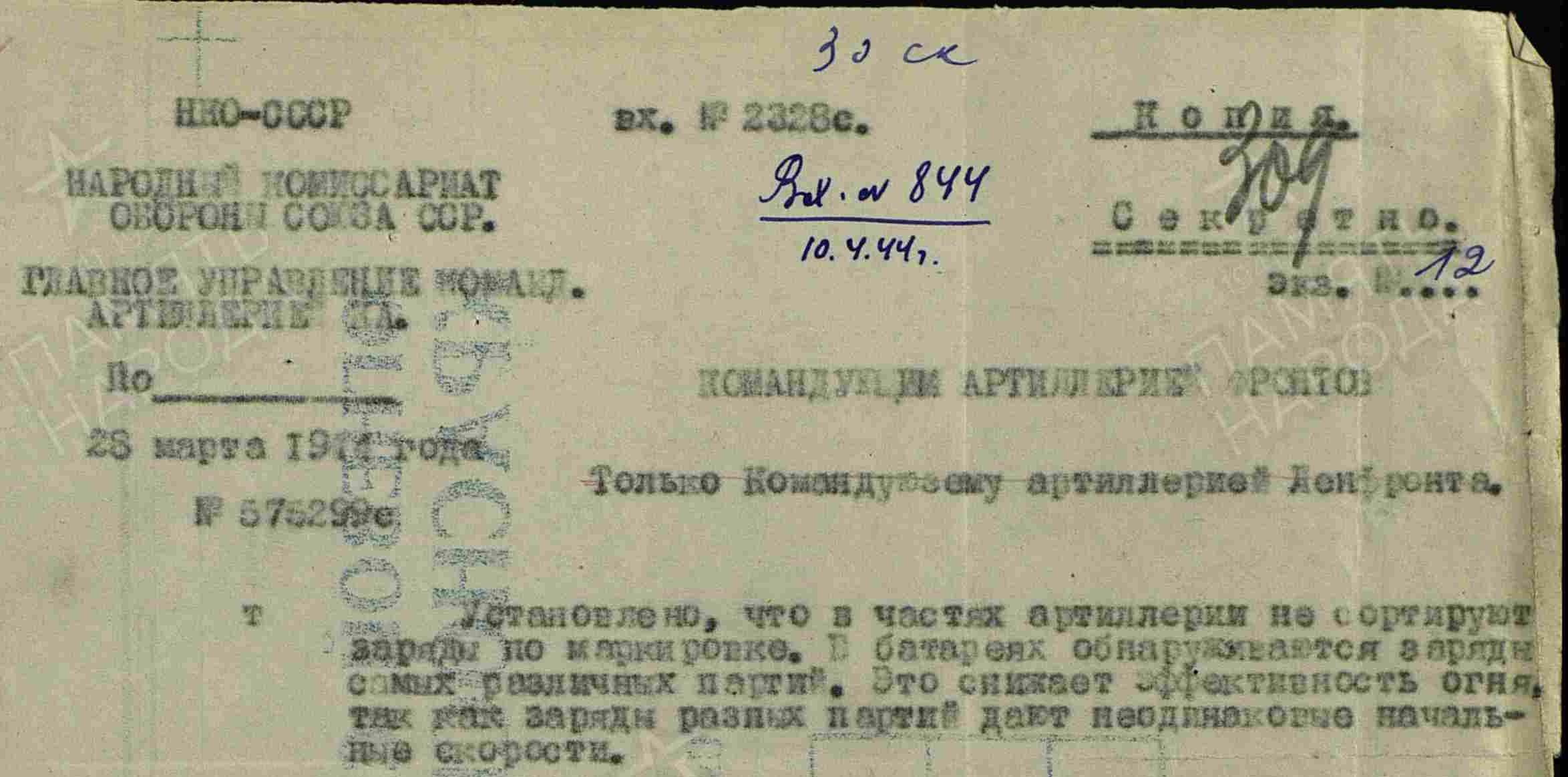 (с) главный маршал артиллерии Воронов, 28.03.1944 года.