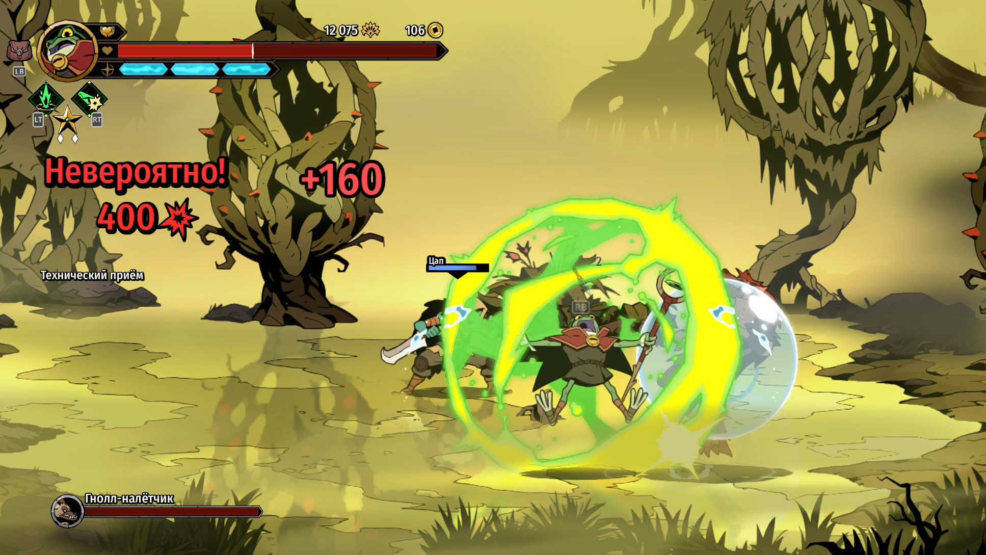 Мир Абсолюма, кстати… занятный. Он достаточно дженериковый, чтобы не вызывать лишних вопросов, но и с некоторыми своими фишками – чтобы не быть слишком скучным. Тут есть эльфы, но… в какой-то момент они массово угорели по некромантии и теперь в их государстве живых толком и нет никого. А ещё на их острове процветает культ каких-то иномирных богов хаоса с тентаклями из разных мест. Тут есть гномы, но… все они были выкованы в особой кузне – нормальными природными способами не размножаются в принципе. Есть гоблины и они… вроде как порождены лесом, пытающимся защититься от людей (но я не уверен). Тут есть болотная страна – и это такой микс из фракции Рана Songs of Conquest и Болота третьих Героев. Тут даже гноллы один в один геройские (ну или dnd-шные), а среди играбельных персонажей есть жабка, гоняющая на магическом посохе как на ховерборде. А, ну и магия в местном фентези тоже есть – тут главные герои как раз с даром. Только магия вне закона – местный правитель решил забрать все фонящие силой кристаллы себе.