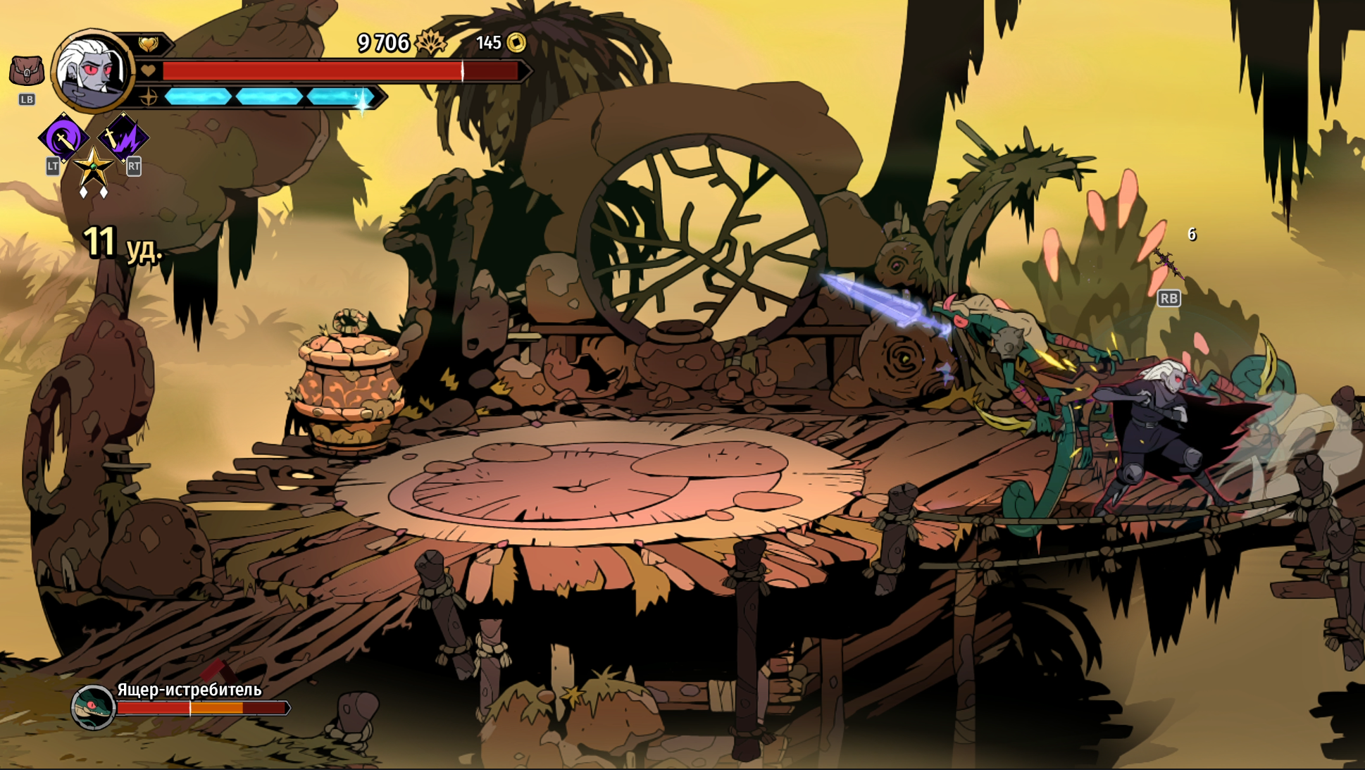 У игрока Absolum легко создаёт вот то чувство, когда от одной тычки противника увернулся, другую отбил, этого врага в воздух отправил, к тому метнулся, отскочил от него обратно к тому, подброшенному в воздух, чтобы, значит, с вертухи по нему… – весь такой ловкий-умелый и необычайно быстрый.