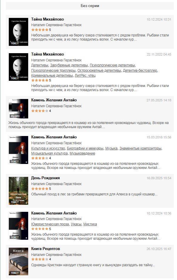 Камню Желания Антайо досталось намного больше внимания! Не зря мой титан КЖА получил целых два списка жанров: тут тебе и "Культура и искусство", и "Знаменитые композиторы". Есть даже "Юмористическая проза". Не знаю насчет того, вдохновляет ли "Камень Желания Антайо" на написание музыки, но эпизодический юмор в книге вполне присутствует (ну не всегда же мне мучить читателя мрачной атмосферой и боями).