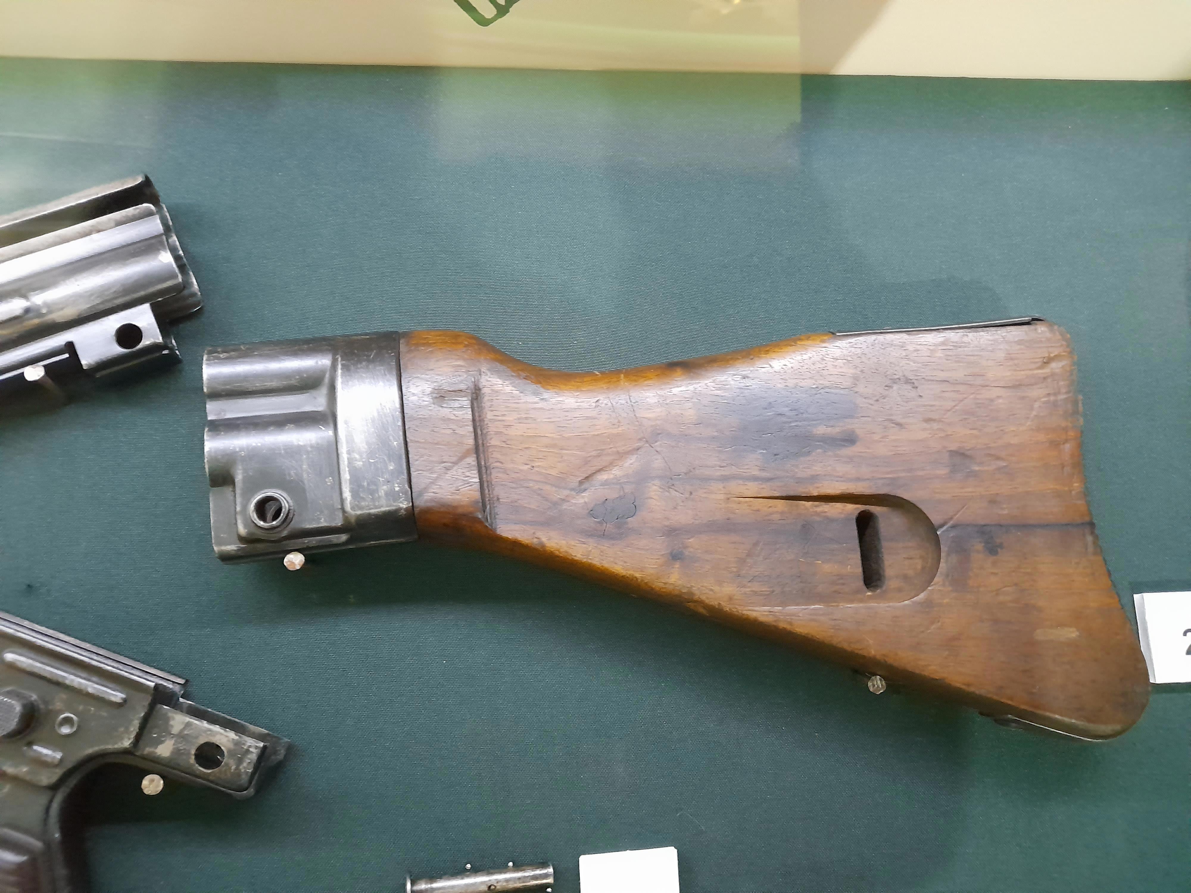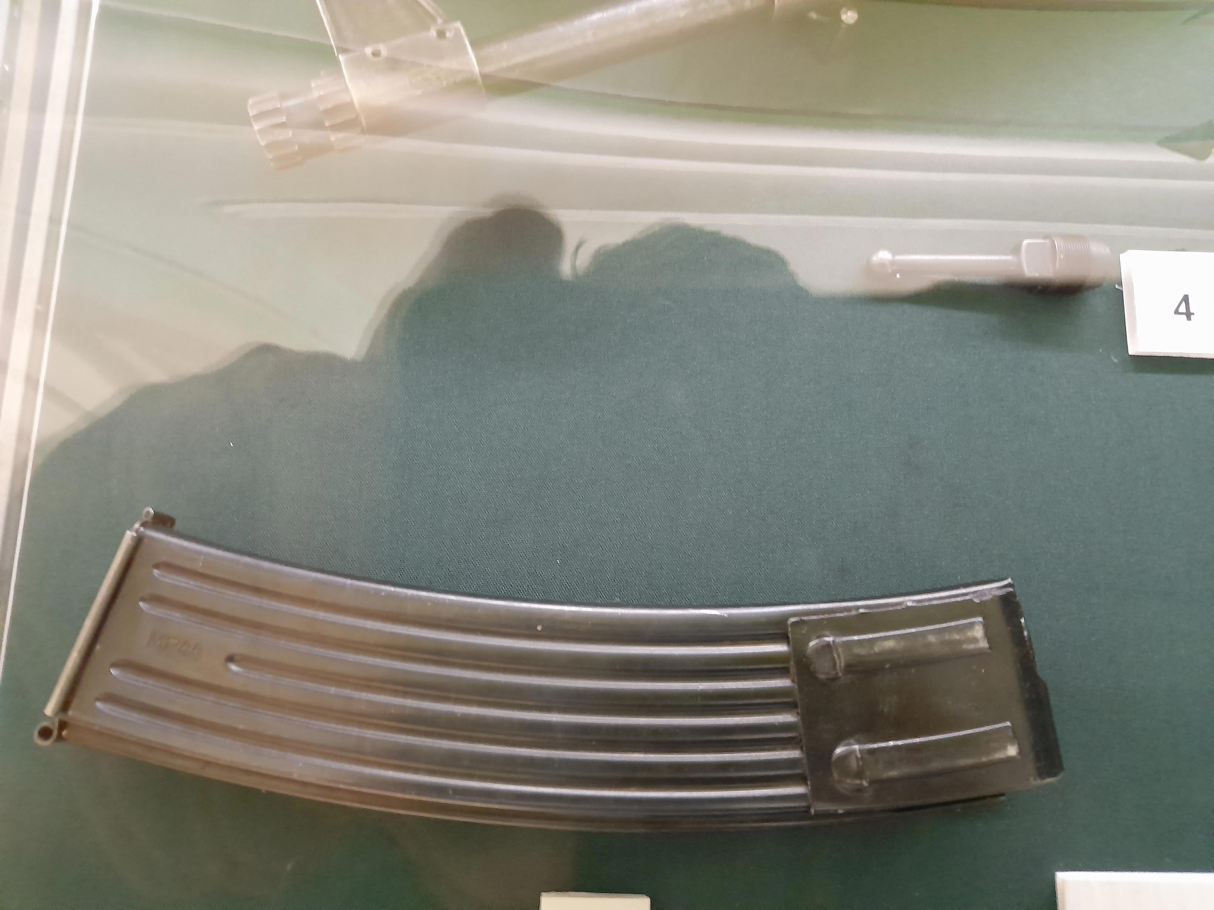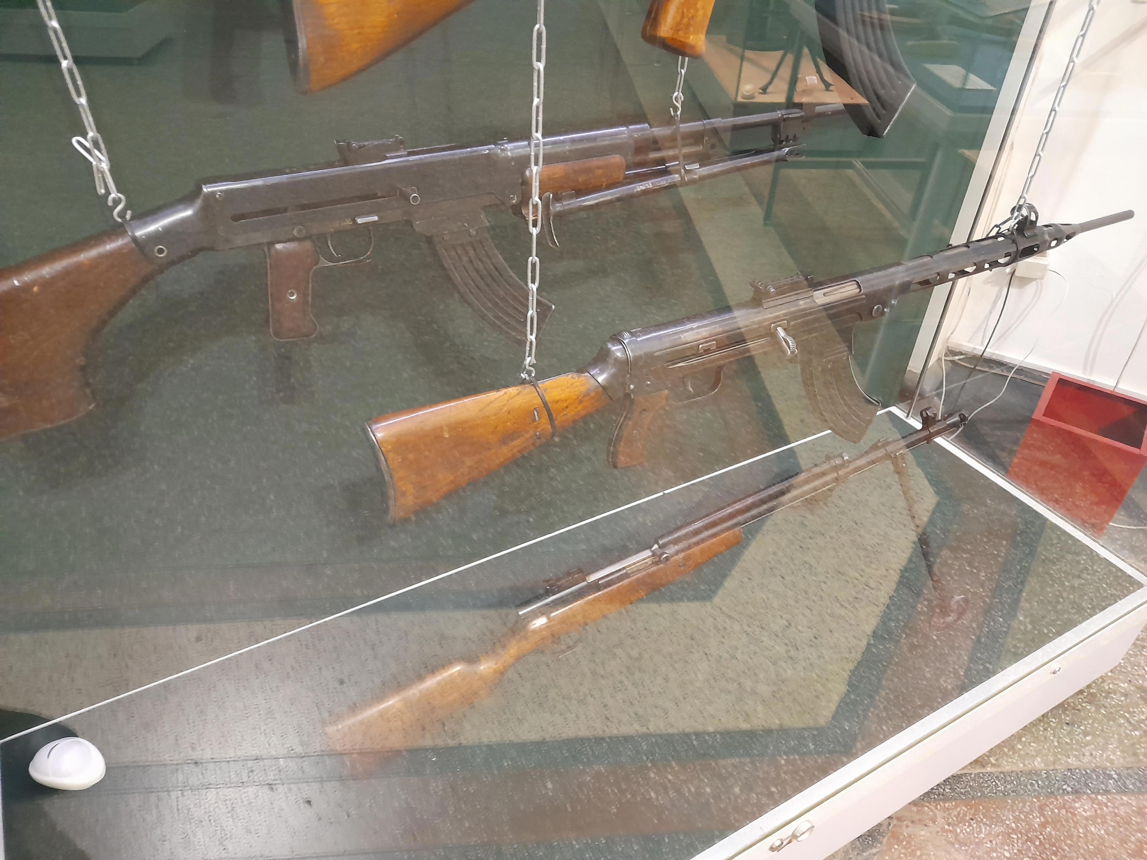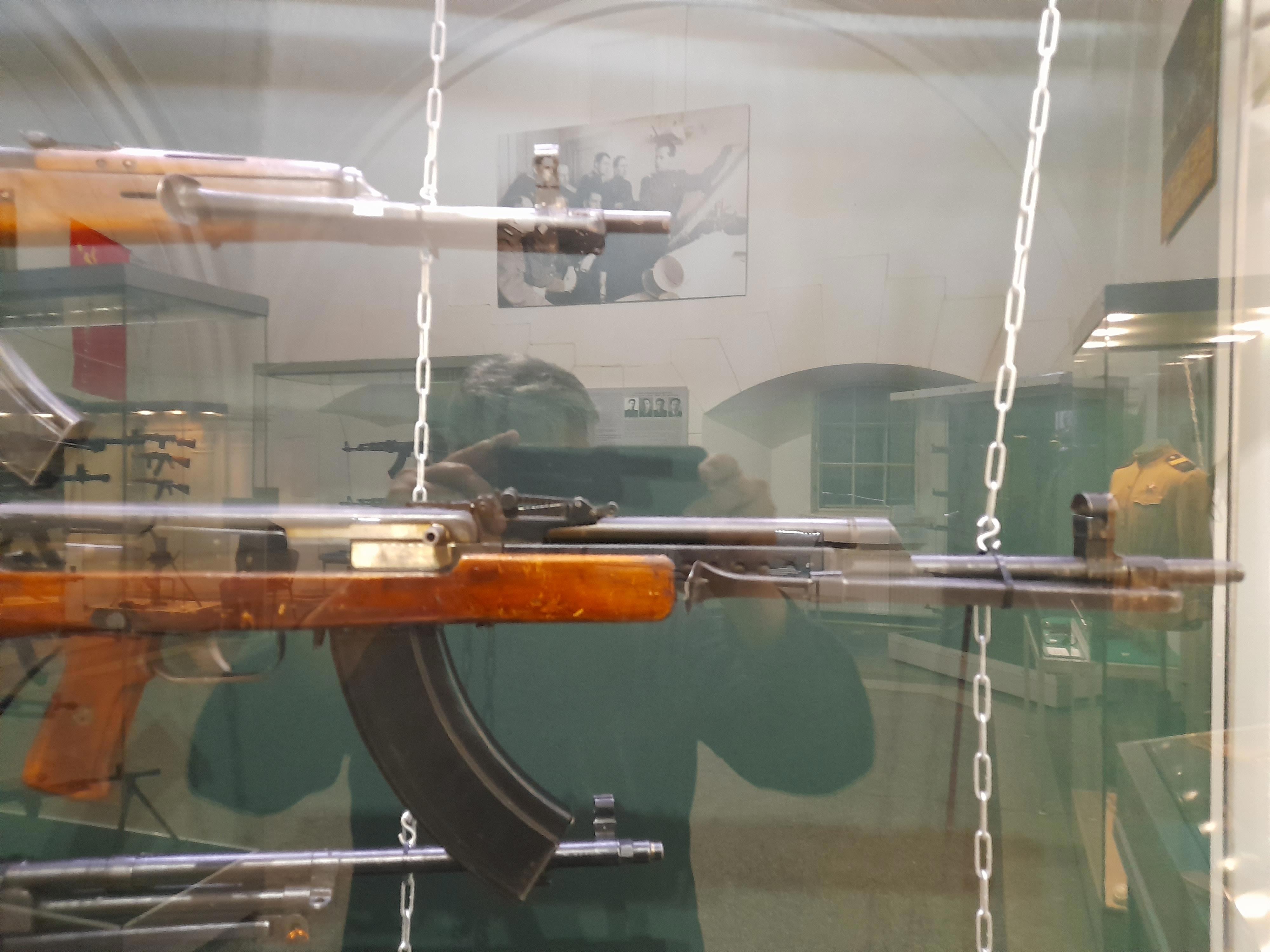 Видать их совсем достали - поставили стенд с разобранными АК и Штурмгевером 44. И разница наглядна даже для женщин, которые не шибко любят оружие.