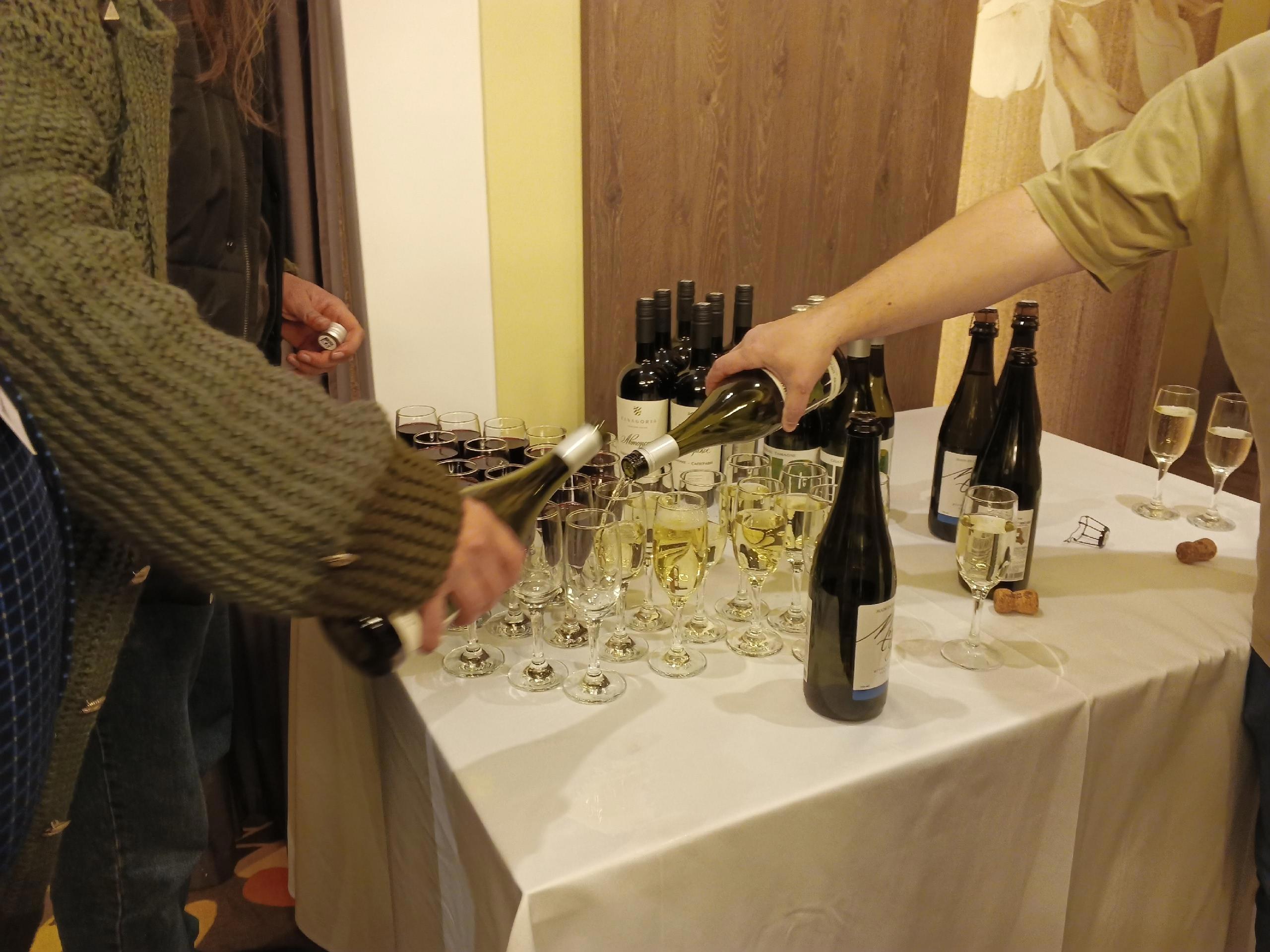 В углу скромно стоял столик на котором располагалось несколько бутылок хорошего вина. Такое количество вина на 50 человек... И его не выпили. Вот те бутылки, что вы видите нераспечатанными так и остались не тронутыми...