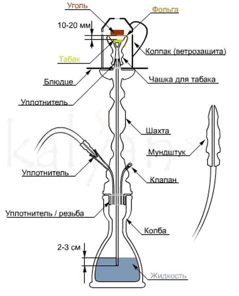 (Тем, кто не знаком с устройством кальяна, перед прочтением рекомендую посмотреть картинку)